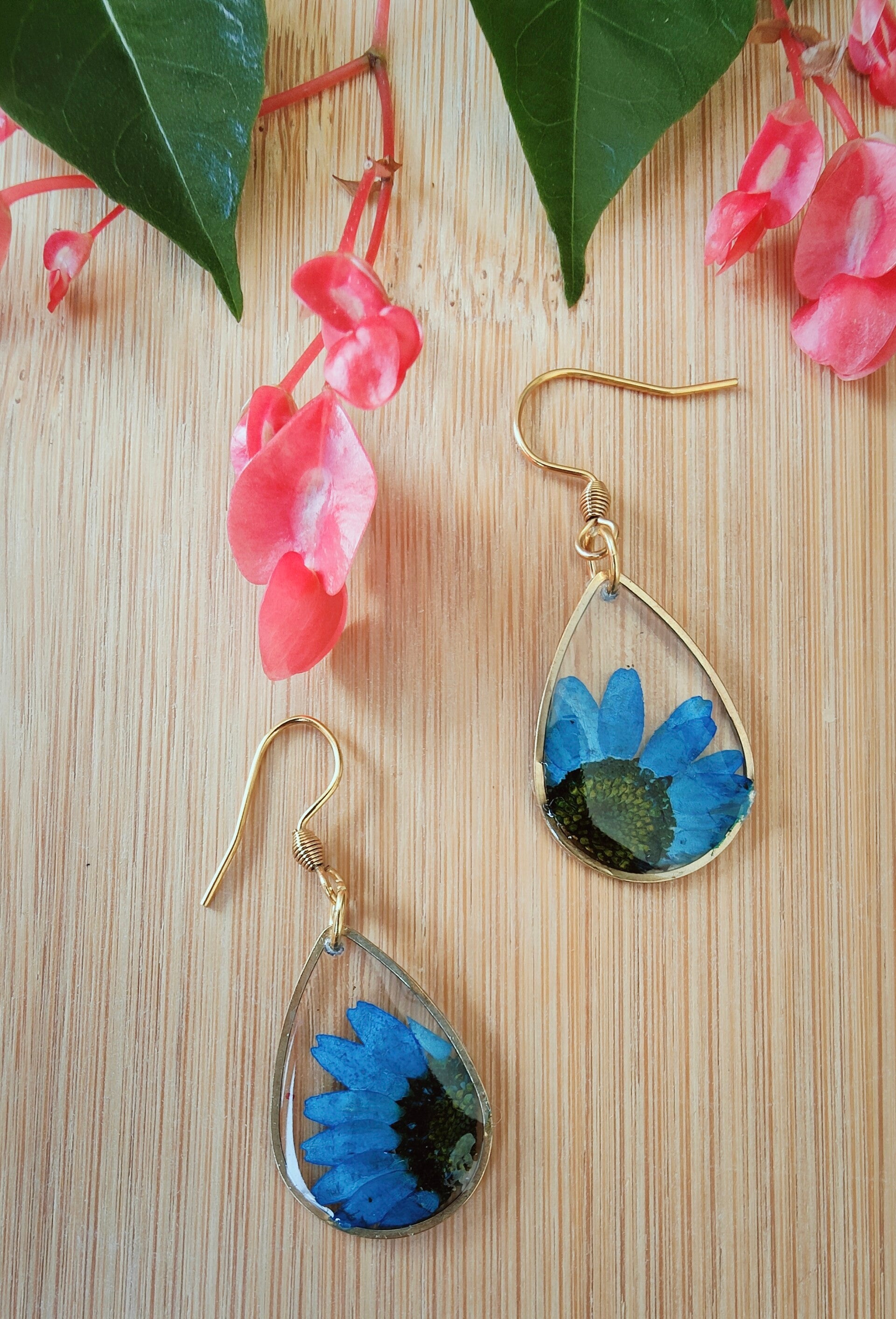 Boucles d'oreilles réalisées à la main en résine et fleurs séchées.